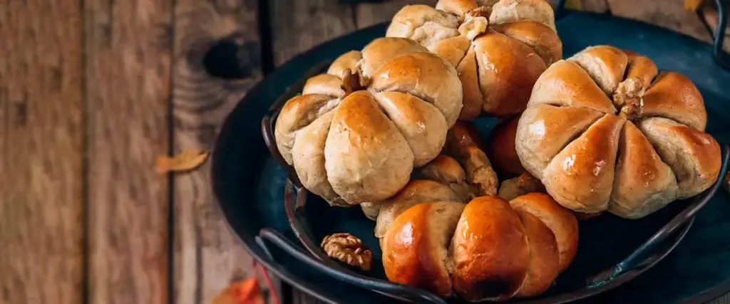 7 Mezclar el huevo, la yema y la leche y brillar las calabazas de pan.